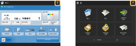 버튼 재배치나 단축키 생성과 같이 화면을 사용자 정의하려면 <홈> 화면과 기본 기능 화면에 표시된 을 누릅니다. 터치 패널 디스플레이 사용자 정의하기![]() 기기를 켠 직후 어떤 화면이 나타나며, 용지 및 토너 잔량에 대해 메시지가 나타나는지 여부와 같은 화면 디스플레이에 대한 설정을 변경할 수 있습니다. <표시 설정> 작동하지 않고 일정 시간이 경과했을 때 표시될 화면을 설정할 수 있습니다. <자동클리어 후의 기능> |