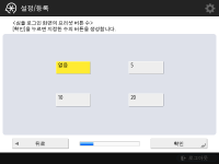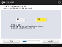 설정 가이드를 사용하지 않는 경우, 1단계에서 <설정 가이드 종료>를 누릅니다. (설정/등록)을 눌러 설정 가이드 중에 구성한 설정을 나중에 개별적으로 지정할 수 있습니다. |
