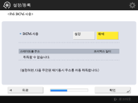 다음 경우에는 설정 가이드를 시작할 수 없습니다.사용자 인증 혹은 부서 ID 인증이 설정된 경우 부서 ID 인증이 설정된 경우 카드 인증이 실행되는 경우 |