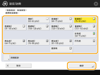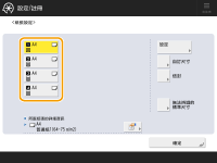 可自動偵測的紙張尺寸如果即使裝入標準尺寸紙張,但是仍然顯示 <自訂>,請按 <自訂尺寸>