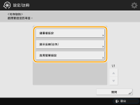 如果已經將本機設定為使用者需要在機器啟動時登入 (指定何時顯示登入畫面),將會顯示 <啟動/恢復後的預設螢幕> 作為 <個人設定> 中的項目。可以對於每位使用者設定本機啟動後顯示的畫面。