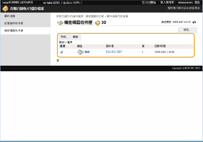 ![]() | 您可以使用遠端使用者介面來列印、傳送或刪除儲存在信箱中的檔案,或是暫時儲存在傳真/I-Fax 收件匣中的傳真和 I-fax。 |