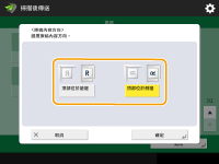 若要在掃描後從 <單鍵> 畫面選擇接收者,請對於 <預設螢幕> 設定 <單鍵>。可縮減將掃描文件傳送到同一個接收者所需的作業。<傳送> 在伺服器機器的單鍵按鈕中註冊的接收者會在下列情況更新: 在用戶端機器上送出傳真工作時 在用戶端機器上按下重設鍵時 在用戶端機器上啟用自動重設時 |