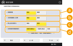 即使 <禁止從外部寫入> 設定為 <開啟>,具有管理員權限的使用者可執行下列操作。 從電腦上的 Windows 檔案總管直接連線至 進階郵件信箱 以操作資料夾/編輯檔案。 在觸控面板顯示幕上使用 <掃描後儲存> 或 <存取已儲存檔案> 中的 <網路> 操作資料夾/編輯檔案。 |