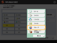 ワンタッチボタンに登録した宛先をグループにまとめ、ひとつの宛先として登録することができます。また、一時保存スペース(ユーザーボックス)もグループに登録することができます(
