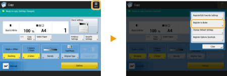 To register a Personal button, you need to log in with personal authentication management. Configuring the Personal Authentication Management Settings If you select <Device Login Authentication Information> for <Information Used for File TX/Browsing Authentication>, a password for a file destination is not stored in a Personal button. <Information Used for File TX/Browsing Authentication> For information on the maximum number of Personal buttons and Shared buttons that can be registered, see Management Functions. Personal buttons cannot be changed to Shared buttons, and vice-versa. To do so, recall the settings and register another button from <Menu>. Press and hold a button to change its name/comment or move/delete it. The same operations (changing the name/comment of a button or moving/deleting a button) can be performed from <Menu> on the <Home> screen. Customizing the <Home> Screen Personal buttons can be shared between multiple devices by synchronizing personalized data. List of Items That Can Be Personalized Settings that can be registered in Personal buttons/Shared buttonsFunctions and settings that can be registered in Personal buttons/Shared buttons are indicated below. Settings that can be registered in <Favorite Settings> for the <Copy> function Reducing Copying Operations <Fax> function settings of the machine Basic Operations for Sending Faxes Settings that can be registered in <Favorite Settings> for the <Scan and Send> function Useful Scanning Functions Settings that can be registered in <Favorite Settings> for the <Scan and Store> function Setting Screen and Operations for Scanning to Save Save locations for the <Scan and Store> and <Access Stored Files> functions Using Storage Space Shortcuts to the Basic Features screen for the <Fax/I-Fax Inbox> function Access to a server and the login password can be registered to Personal buttons/Shared buttons. This is convenient for skipping password entry when recalling the registered button. If you want to set password in the settings stored in the registered button, as you often import settings in a Personal button or Shared button to another machine and you want to prevent users from pretending to be other users, exclude a password when registering. Importing/exporting the registered buttonsYou can import and export the registered Personal/Shared buttons from the Remote UI. Importing/Exporting All Settings The Personal buttons/Shared buttons of imageRUNNER ADVANCE series devices that have the Quick Menu function can be imported/exported as Personal buttons/Shared buttons. |