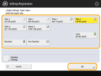 If the paper type loaded is not displayed, press <Detailed Settings> to select from a list.