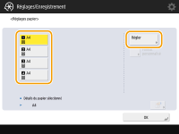 Sélectionnez la source de papier dans laquelle le papier est chargé et appuyez sur <Régler>.