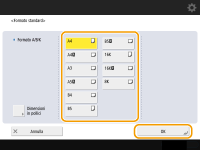 1 | Premere <Formato personalizz.>. ![]() Il formato della carta può essere specificato tramite <Formato libero>, che elimina la necessità di inserire le impostazioni relative al formato. Specificare <Formato libero> quando si carica carta dal formato sconosciuto da utilizzare per la copia o quando il formato della carta è già registrato nel driver della stampante. |