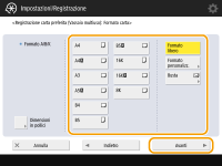 2 | Selezionare il tipo di busta. ![]() Per registrare una busta in formato personalizzato, premere <Personalizz.> <Avanti> quindi <X> o <Y> per specificare il lato, quindi utilizzare i tasti numerici per inserire la lunghezza del lato specificato. |