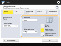 ![]() | Quando si copiano documenti che contengono informazioni riservate, è possibile incorporare del testo invisibile come "TOP SECRET" o "RISERVATO" per avvisare gli utenti non autorizzati di non copiarli. Quando si copia un documento che è già stato copiato, il testo incorporato compare in tutta la pagina, impedendo copie non autorizzate delle copie. Opzioni di sistema A seconda della macchina in uso, questa funzione è disponibile per impostazione predefinita. |