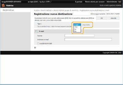 [Elenco indirizzi per amministratori] è disponibile solo agli amministratori che effettuano l'accesso con privilegi di amministratore o amministratore dispositivo.