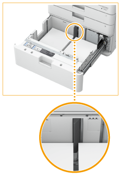 Legen Sie Papier nicht über die Füllhöhenmarkierung hinaus einAchten Sie darauf, dass der Papierstapel nicht über die Füllhöhenmarkierung ( ) hinausragt. Wenn zu viel Papier eingelegt wird, kann es zu Papierstau kommen. |