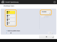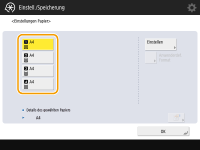 Wenn der eingelegte Papiertyp nicht angezeigt wird, drücken Sie <Detail. Einstell.>, um den Papiertyp aus einer Liste zu wählen.