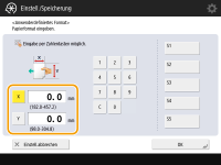 | Drücken Sie <X> oder <Y>, um die Länge der einzelnen Seiten mit den Zahlentasten einzugeben. |