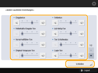 Legen Sie die einzelnen Bestätigungs-/Warntöne fest, und drücken Sie <Schließen>.