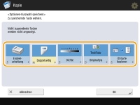 Tasten, die hier angezeigt werden, erscheinen derzeit auf dem Grundfunktionsbildschirm. Tasten, die in diesem Schritt ausgewählt werden, erscheinen nicht auf dem Grundfunktionsbildschirm.