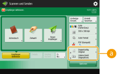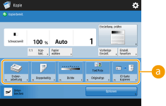 Die auf dem Grundfunktionsbildschirm (für Kopieren, Faxen und Scannen) angezeigten Einstelltasten können mit den übrigen Einstelltasten unter <Optionen> geändert werden. Durch Platzieren der häufig verwendeten Einstelltasten auf dem Grundfunktionsbildschirm können Sie die Funktionen effizienter nutzen. Zudem können Sie durch die Anmeldung mit persönlicher Authentisierungsverwaltung verschiedene, an die jeweiligen Grundfunktionsbildschirme angepasste Benutzer anzeigen.