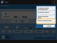 Wenn Sie das Grundfunktionsdisplay zum Kopieren in den Expresskopie-Bildschirm umgeschaltet haben (Schnelles Ändern der Einstellungen (Express Kopierbildschirm)), wählen Sie die Schaltfläche in Schritt 3, und drücken Sie dann <Speichern>.