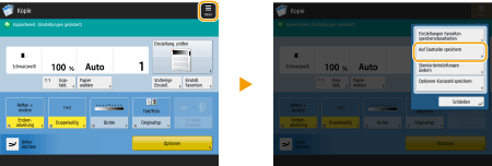 Um eine persönliche Schaltfläche zu registrieren, müssen Sie sich über die persönliche Authentisierungsverwaltung anmelden. Konfigurieren der Einstellungen für die persönliche Authentifizierungsverwaltung Wenn Sie <Authentisierungs-Info für Geräte-Login> für <Info verwend.für Auth. Datei SE/Durchsuchen> wählen, kann das Passwort für ein Dateiziel nicht als persönliche Taste gespeichert werden. <Info verwend.für Auth. Datei SE/Durchsuchen> Informationen zur maximal registrierbaren Menge von persönlichen Tasten und gemeinsamen Tasten finden Sie unter Verwaltungsfunktionen. Persönliche Tasten lassen sich nicht in gemeinsame Tasten umwandeln und umgekehrt. Sie müssen stattdessen die gewünschten Funktionen über das Menü <Menü> aufrufen und als neue Taste registrieren. Drücken und halten Sie die Taste, deren Namen/Kommentar Sie ändern oder die Sie verschieben/löschen möchten. Diese Aktionen (Namens-/Kommentaränderung bzw. Verschieben/Löschen von Tasten) können Sie auch über das <Menü> im Bildschirm <Startseite> durchführen. Anpassen der <Startseite> Durch die Synchronisierung personalisierter Daten lassen sich persönliche Tasten auf mehreren Geräten nutzen. Liste der personalisierbaren Elemente Einstellungen, die in persönlichen Tasten/gemeinsamen Tasten registriert werden könnenDie folgenden Funktionen und Einstellungen können in persönlichen Tasten/gemeinsamen Tasten registriert werden. Einstellungen, die in <Einstellungen Favoriten> für die Funktion <Kopieren> registriert werden können Reduzieren von Kopierfunktionen <Fax>-Funktionseinstellungen des Geräts Grundfunktionen für das Senden von Faxnachrichten Einstellungen, die in <Einstellungen Favoriten> für die Funktion <Scannen und Senden> registriert werden können Nützliche Scanfunktionen Einstellungen, die in <Einstellungen Favoriten> für die Funktion <Scannen und Speichern> registriert werden können Einstellungsbildschirm und Funktionen für den Scanvorgang zum Speichern Speicherorte für die Funktionen <Scannen und Speichern> und <Zugang zu gespeicherten Dateien> Verwendung des Speicherplatzes Schnelltasten zum Grundfunktionsbildschirm für die Funktion <Fax/I-Fax Eingangsbox> Der Zugriff auf einen Server und das Login-Passwort können in persönlichen Tasten/gemeinsamen Tasten registriert werden. Dies ist praktisch, um die Passworteingabe beim Aufrufen der registrierten Taste zu überspringen. Wenn Sie in den Einstellungen, die in der registrierten Schaltfläche gespeichert sind, ein Passwort festlegen möchten, da Sie häufig Einstellungen einer persönlichen oder gemeinsamen Schaltfläche auf ein anderes Gerät übertragen und verhindern möchten, dass Benutzer sich als andere Benutzer ausgeben, sollten Sie bei der Registrierung eine Passworteingabe ausschließen. Importieren/Exportieren der registrierten TastenSie können die registrierten persönlichen/gemeinsamen Tasten über Remote UI importieren und exportieren. Importieren/Exportieren aller Einstellungen Die persönlichen Tasten/gemeinsamen Tasten von Geräten der imageRUNNER ADVANCE-Reihe mit Expressmenü können als persönliche Tasten/gemeinsame Tasten importiert/exportiert werden. |
