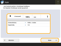 legen Sie die Kopiereinstellungen fest. Bildschirm <Startseite>