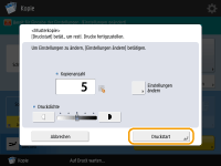 Geben Sie die Anzahl der Kopien ein und nehmen Sie die Kopiereinstellungen gemäß dem Zweck und Ziel vor.