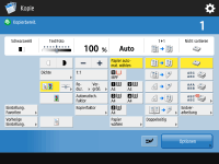 Diese Schaltfläche wird je nach Anzahl der Kopien und Einstellungen angezeigt. Sie können eine Beispielkopie drucken, um das Kopierergebnis vor Beginn eines großen Kopierauftrags zu prüfen. Prüfen der Kopierergebnisse