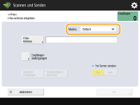Auftragsart: Fax (Speicher senden) oder Scannen und Senden (Fax/I-fax)