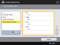 (Einstellungen/Speicherung)  <Einstellungen Funktion>  <Senden>  <Allgemeine Einstellungen>  <Datei SE an Persönlichen Ordner beschränken>  <Ein>  <OK>