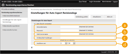 Wenn [Einstellungen für Auto Export Revisionslogs] aktiviert ist, können Sie Revisionslogs nicht manuell löschen. |