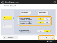 Wählen Sie <Aus> für die Funktionen aus, die Sie verwalten möchten, drücken Sie dann <OK>.