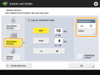Wenn das in <Originalformat> angezeigte Format vom Format des Originals abweicht, drücken Sie <Ändern>, um das Format zu wählen. Nur die auf dem Touchpanel-Display angezeigten Originalgrößen können gescannt werden.