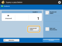Auf dem Dateiauswahlbildschirm wurden Dateien, für die ein Symbol mit angezeigt wird, zusammen mit den Druckeinstellungen gespeichert, die beim Speichern angegeben wurden. Drücken Sie nicht <Druckeinstell. ändern>, wenn Sie mit diesen Einstellungen drucken möchten. Die angegebenen Einstellungen werden sonst möglicherweise deaktiviert.