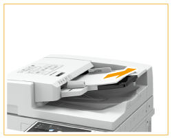 ![]() | Wenn ein Original gestaut ist, ziehen Sie es vorsichtig in Pfeilrichtung heraus. ![]() Wenn Sie das gestaute Original nicht entfernen können, fahren Sie mit dem nächsten Schritt fort, ohne es gewaltsam zu entfernen. |