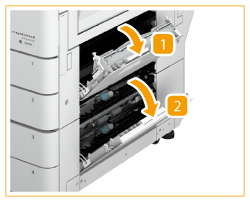![]() | Öffnen Sie die untere rechte Abdeckung der Papierkassette. ![]() |