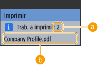 En cuanto a los trabajos en espera para imprimirse, se muestra como nombre de trabajo el nombre del último trabajo recibido.
