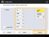 2 | Seleccione el tamaño de papel. ![]() ![]() Para obtener información sobre los tamaños de papel mostrados cuando se pulsa <Otro tamaño>, consulte Papel disponible. |
