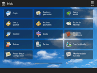 El orden, tamaño y número de botones mostrados en la pantalla de <Inicio> puede cambiarse, así como la imagen de fondo. <Opciones de gestión de inicio> le permite configurar las opciones de visualización del cronograma y mostrar/ocultar los botones de función.
