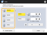 Si se ha establecido un margen, las imágenes se desplazarán el ancho del margen y se copiarán. Si en el original una imagen se extiende hasta los bordes de la hoja, puede quedar parcialmente cortada en la copia. |
