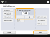 ![]() | Puede ampliar o reducir especificando el porcentaje de aumento (%). Ampliar o reducir especificando el aumento |