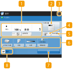 将“基本复印功能”屏幕更改为“快速复印屏幕”可以快速访问各个设置项目。 快速更改设置(快速复印屏幕) |