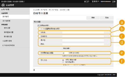 [文件更新确认间隔:]可以指定要导入的文件检查间隔时间(以分钟为单位)。