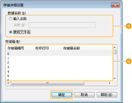本机中注册的存储箱名称可以应用于打印机驱动程序。有关详细信息,请参阅打印机驱动程序的“帮助”。