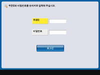 부서 ID 관리가 구현되지 않은 경우부서 ID 관리 없이 시스템 관리자 ID와 PIN만 설정되어 있는 경우, 시스템 관리자와 일반 사용자의 로그인 방식이 각기 다릅니다. 시스템 관리자에 대하여 [시스템 관리 부문 ID]/[시스템 관리자 PIN 번호]를 입력한 후 [로그인(관리자)]을 클릭합니다. 일반 사용자는 부서 ID 및 PIN을 입력할 필요가 없습니다. [로그인(일반 사용자)]을 클릭합니다. |