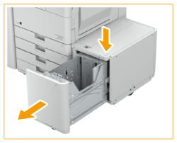 기기가 슬립 모드인 경우 용지 데크를 열지 못할 수 있습니다. 이런 경우, 을(를) 눌러 기기를 다시 활성화한 다음 "Paper Deck Unit-F"에 있는 열기 버튼을 누르십시오. |
