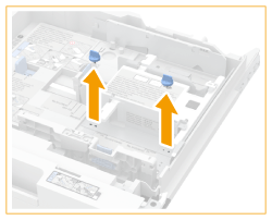1 | 기기에서 용지 카세트 2를 꺼냅니다. 용지 카세트의 왼쪽과 오른쪽을 양손으로 잡고 기기에서 용지 카세트를 당겨서 들어 올립니다. 용지 카세트에 적재된 봉투를 꺼냅니다. |