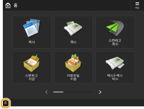 를 누르면 <홈> 화면이 표시됩니다 . <홈> 화면에 기능 버튼 목록이 표시되고 다양한 기능으로 이동하는 링크 역할을 합니다. <홈> 화면에 표시되는 항목