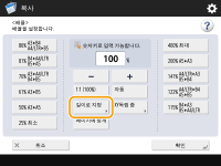 ![]() | 규격 외 문서 또는 투명도가 높은 문서를 복사하고자 하는 경우, 또는 수동 급지대에 설정된 용지로 복사하고자 하는 경우 용지를 수동으로 선택해야 합니다. |
