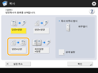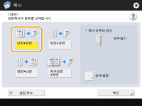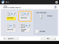 ![]() | 단면 문서를 용지 양쪽 면에 모두 복사할 수 있습니다. 양면 문서를 용지 양쪽 면에 복사할 수도 있고, 두 장에 따로 복사할 수도 있습니다. 단면 -> 양면 복사 양면 -> 양면 복사 양면 -> 단면 복사 |