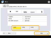 ![]() | 이전에 사용한 복사 설정을 불러올 수 있습니다. 불러온 설정의 세부 사항을 복사 전에 변경할 수 있습니다. |